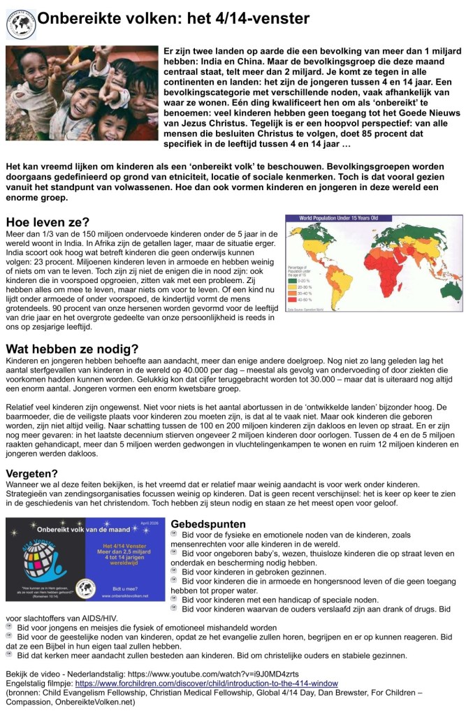 Wenst u ons te helpen om meer mensen te motiveren om te bidden voor het 4/14 Venster en andere onbereikte bevolkingsgroepen? Deel dan deze info via uw kerkblad, e-mail, website, sociale media,…