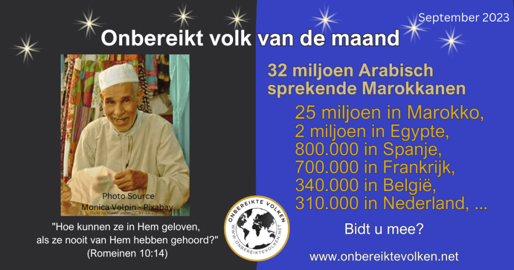 Wij bidden deze maand, doelgericht, voor de Arabisch sprekende Marokkanen in ons land en wereldwijd. U, uw kerk, uw gebedsgroep toch ook?