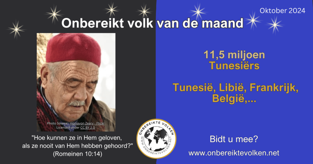 Wenst u ons te helpen om meer mensen te motiveren om te bidden voor de Tunesiërs en andere onbereikte bevolkingsgroepen? Deel dan deze info via uw kerkblad, e-mail, website, sociale media,…
