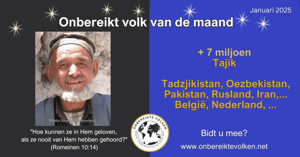 Wenst u ons te helpen om meer mensen te motiveren om te bidden voor de Tajik en andere onbereikte bevolkingsgroepen? Deel dan deze info via uw kerkblad, e-mail, website, sociale media,…