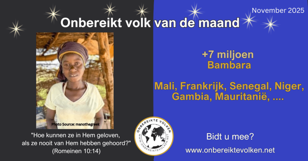 Wenst u ons te helpen om meer mensen te motiveren om te bidden voor de Bambara en andere onbereikte bevolkingsgroepen? Deel dan deze info via uw kerkblad, e-mail, website, sociale media,…