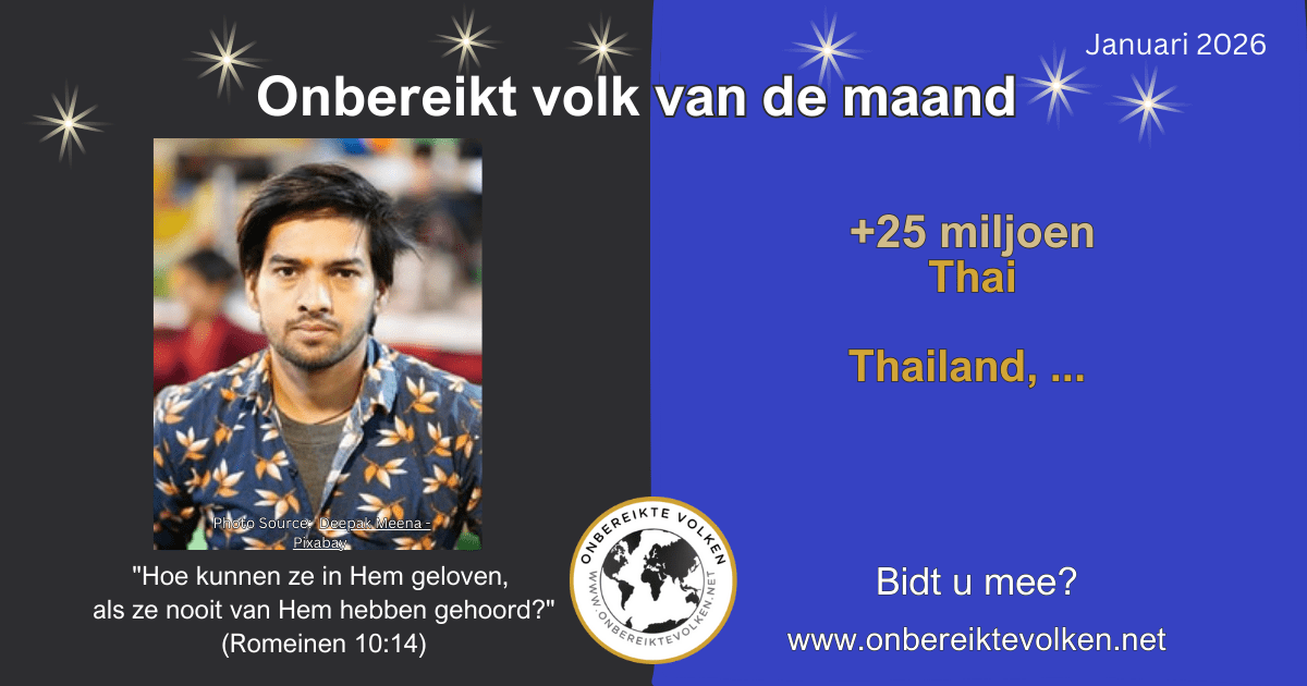 Wenst u ons te helpen om meer mensen te motiveren om te bidden voor de Thai en andere onbereikte bevolkingsgroepen? Deel dan deze info via uw kerkblad, e-mail, website, sociale media,…