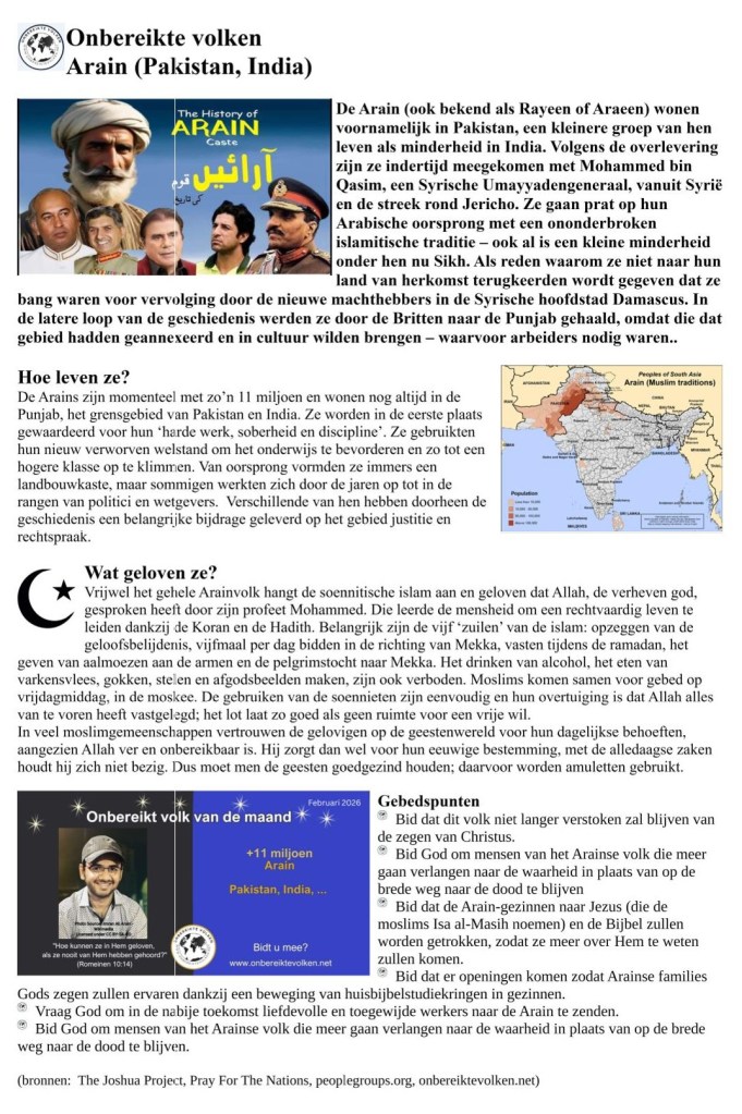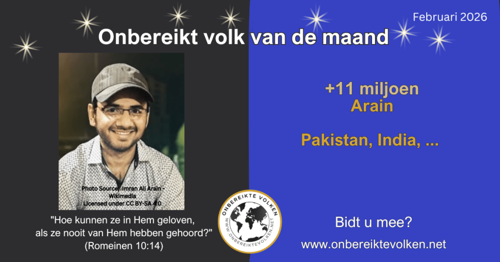 Wenst u ons te helpen om meer mensen te motiveren om te bidden voor de Arain en andere onbereikte bevolkingsgroepen? Deel dan deze info via uw kerkblad, e-mail, website, sociale media,…